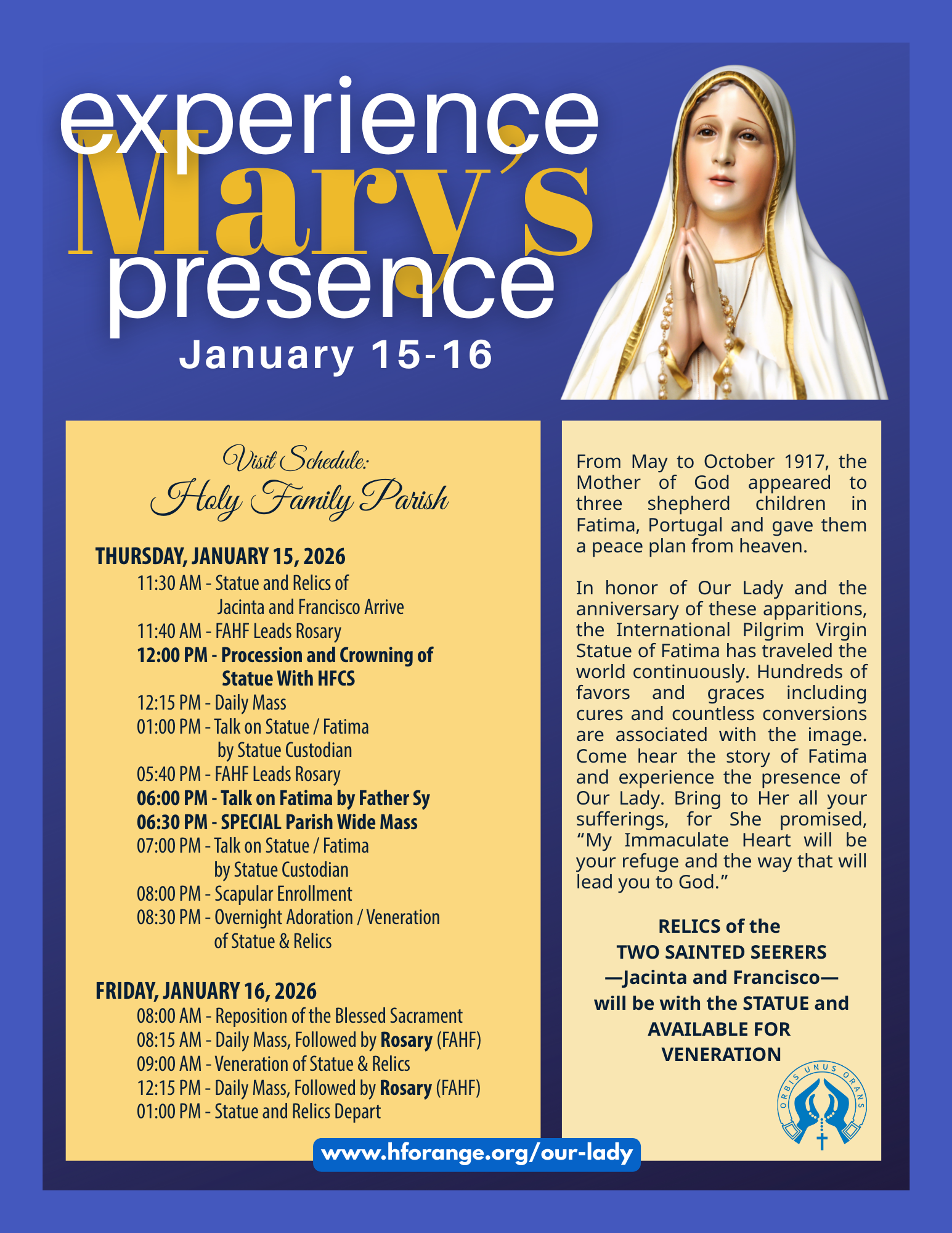 12:00 PM - Procession and Crowning of Statue With HFCS
